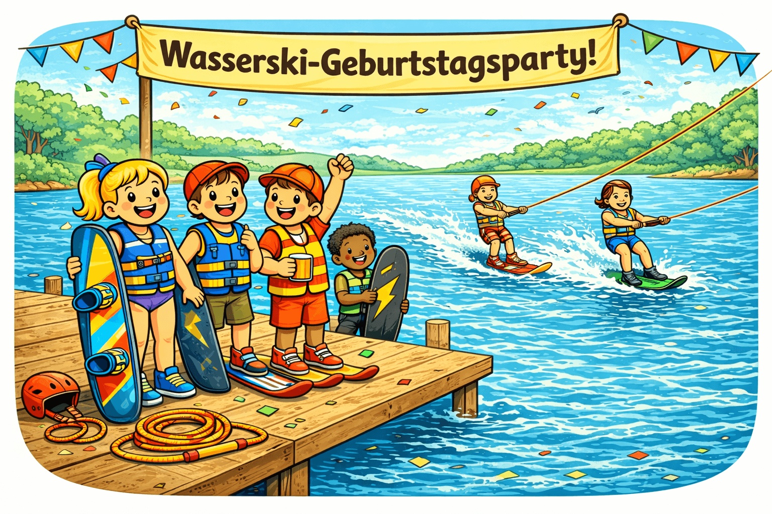 Unsere Wasserski-Party für 5–12 Personen findet während der regulären Öffnungszeiten im öffentlichen Betrieb statt. Eine Begleitperson ist kostenlos dabei.